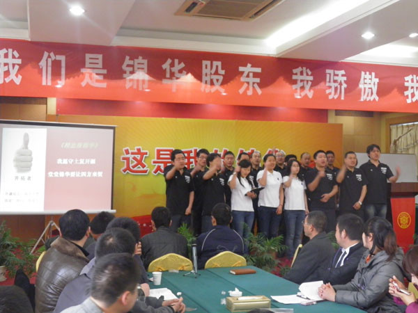 上午一個重要的環(huán)節(jié)就是——陳述承諾,表達承諾!所有在場的股東,都用自己的方式,闡述了自己在2011年,作為錦華股東,所作出的承諾——從馬鞍山走回南京、總部23樓爬2個來回、喊1000遍敬業(yè)口號、自罰不菲金額。