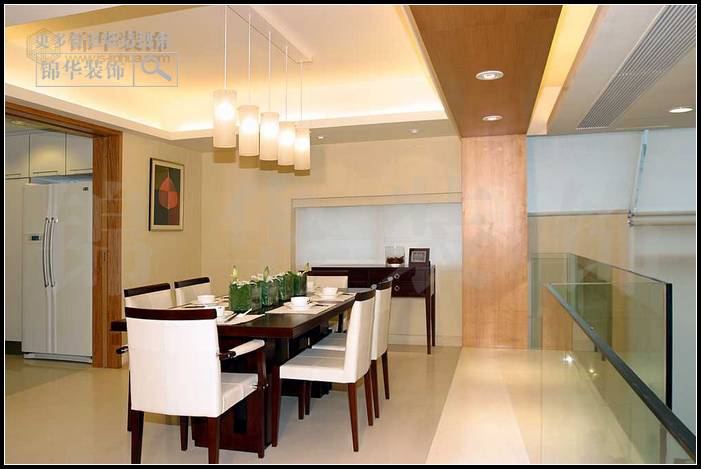 通過很長時間的接觸,了解了居住者的家庭構(gòu)成、喜好以及性格,從而確定這套房子的設(shè)計方向。在建筑空間上完全合乎居住者要求,于是設(shè)計方向定格在房屋的視覺效果以及居住者所要表達(dá)的情愫。 餐廳采用鋼化玻璃創(chuàng)造延展景深的效果,在燈光的開關(guān)變化中,為空間勾勒出層次豐富的燈影,在虛實交錯的光束紋理中,逐步帶給人們清馨淡雅的視覺享受。
