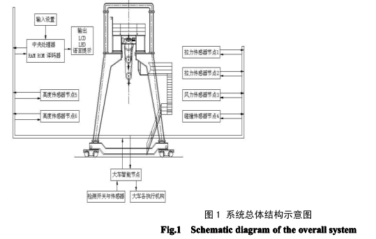 起重機(jī)用戶關(guān)心的涉及到安全方面的工況參數(shù)主要有:主鉤與副鉤的起重載荷和起升高度、大梁的 起重力矩、工作幅度、鋼絲繩狀況、風(fēng)速(力)大小、起重過(guò)程中載荷振動(dòng)情況以及大、小車的各種信 息(如輪子與軌道的接觸狀況、電動(dòng)機(jī)轉(zhuǎn)速參數(shù)、溫度)等。如何對(duì)這些工況參數(shù)進(jìn)行巡回采集、算法 處理,并實(shí)時(shí)輸出控制和提示是本系統(tǒng)設(shè)計(jì)的關(guān)鍵所在。